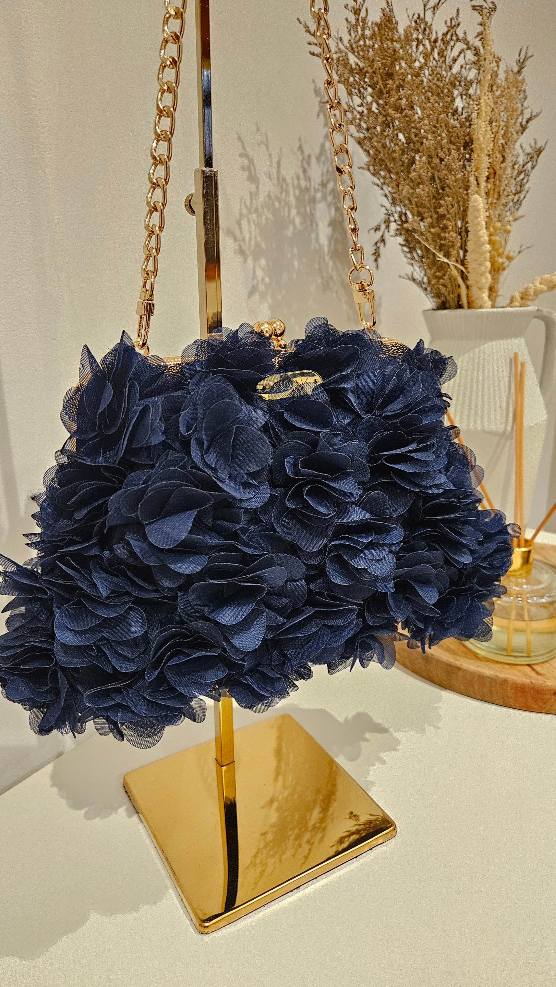 Su diseño hecho a mano , con flores de tela que aportan volumen y delicadeza, lo convierten en el accesorio perfecto para ocasiones especiales.