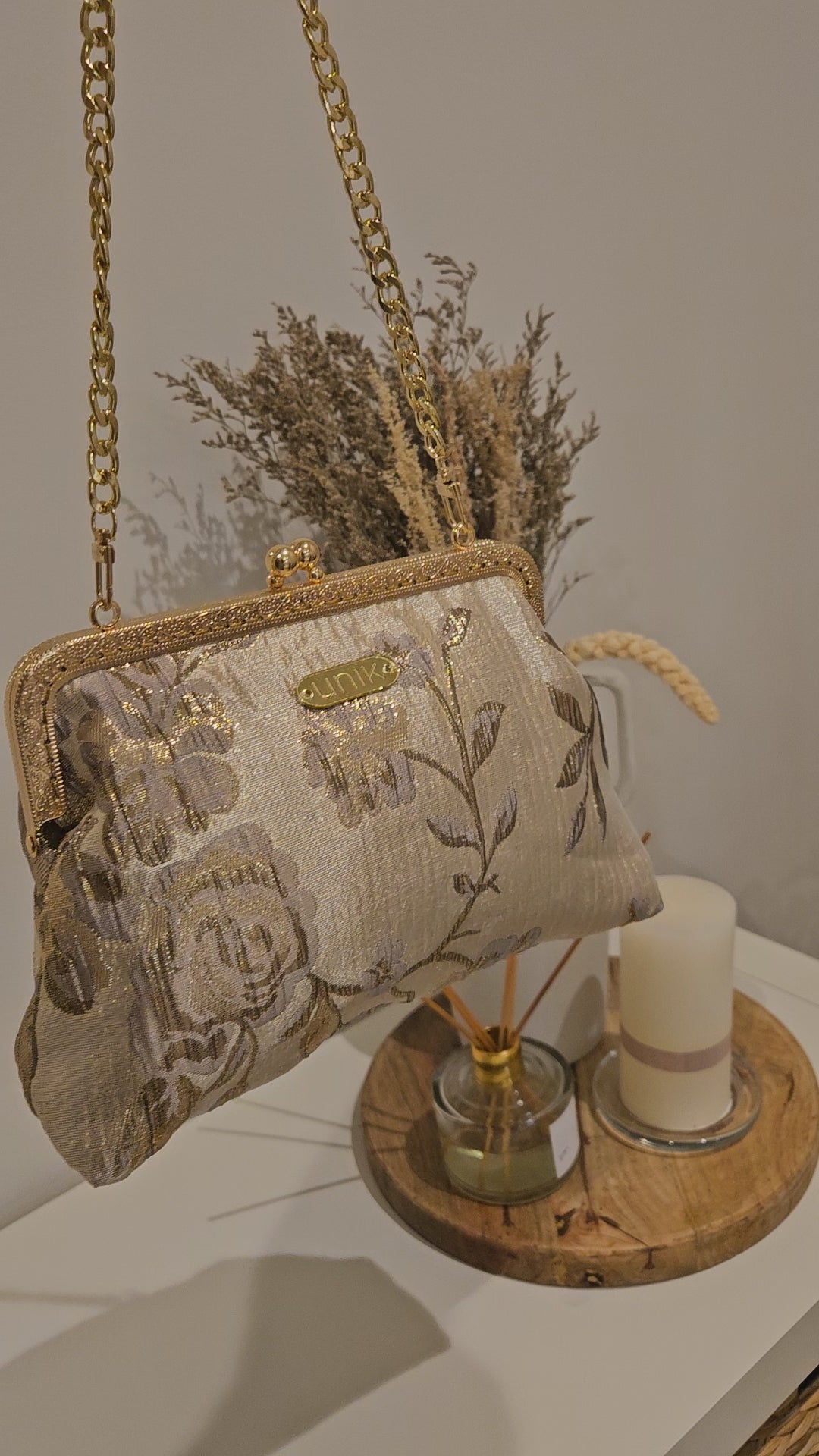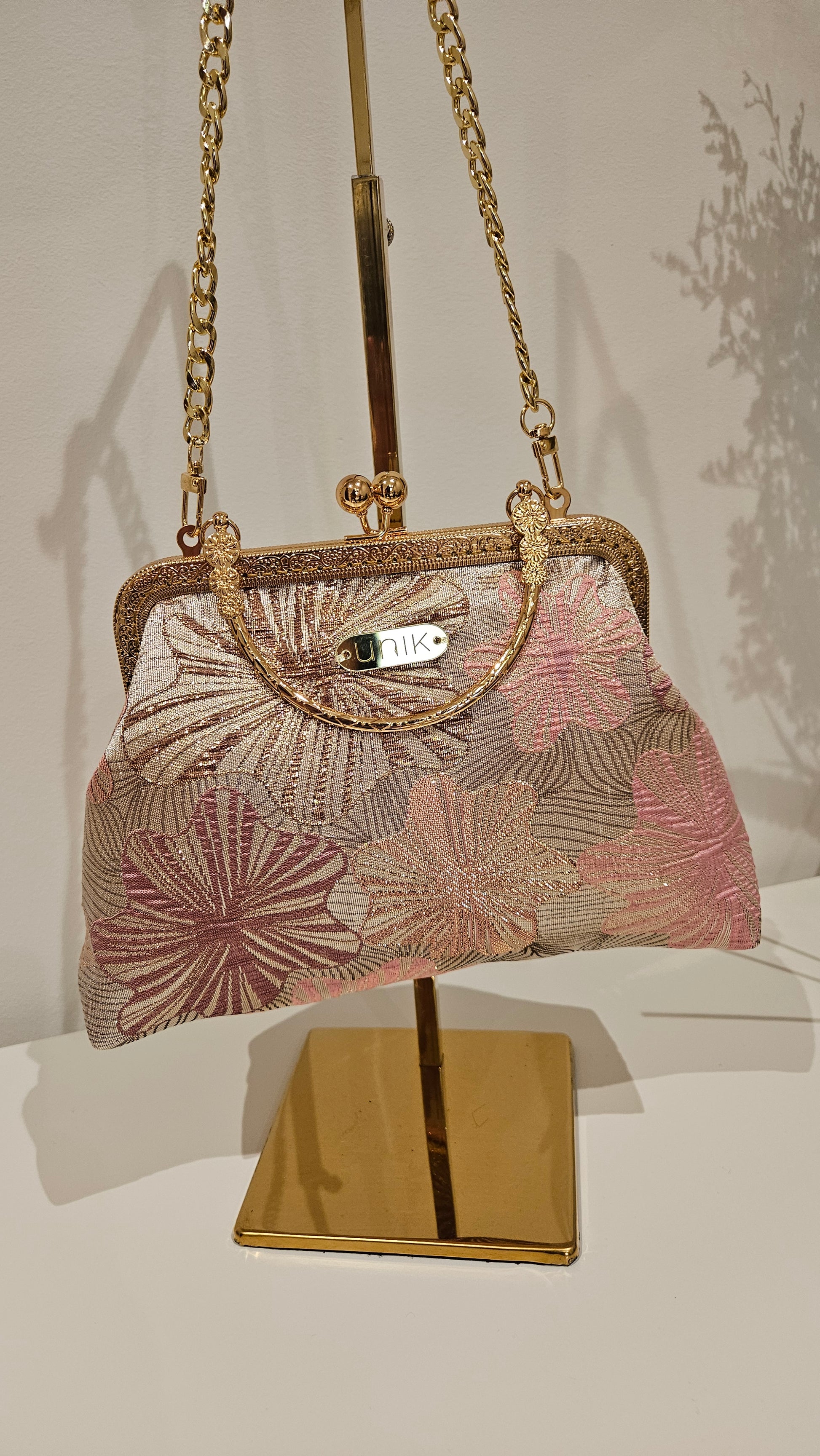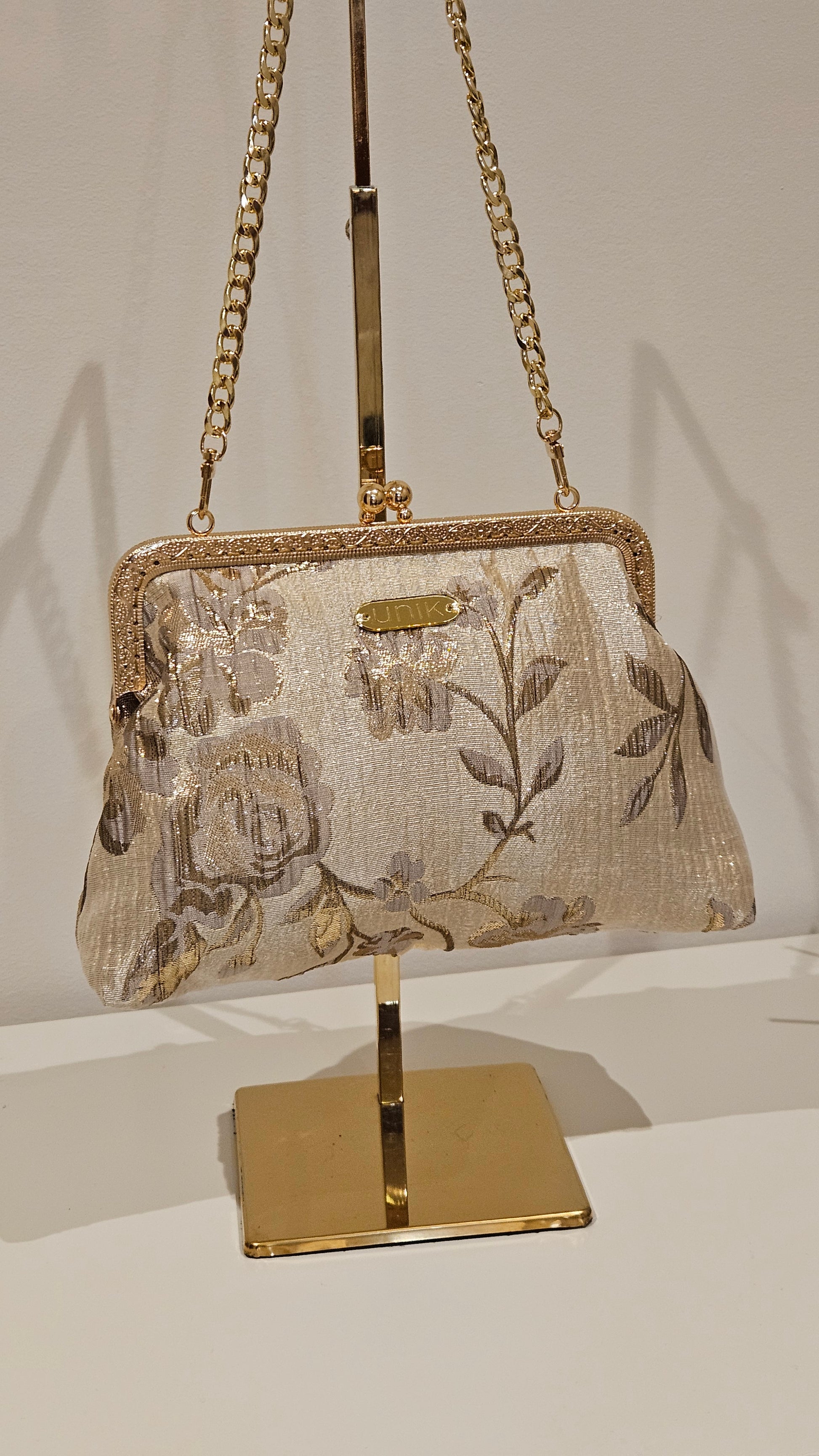 · Medidas : 17 cm altura y 25 cm ancha . Cadena metálica dorada · Etiqueta Unik  |