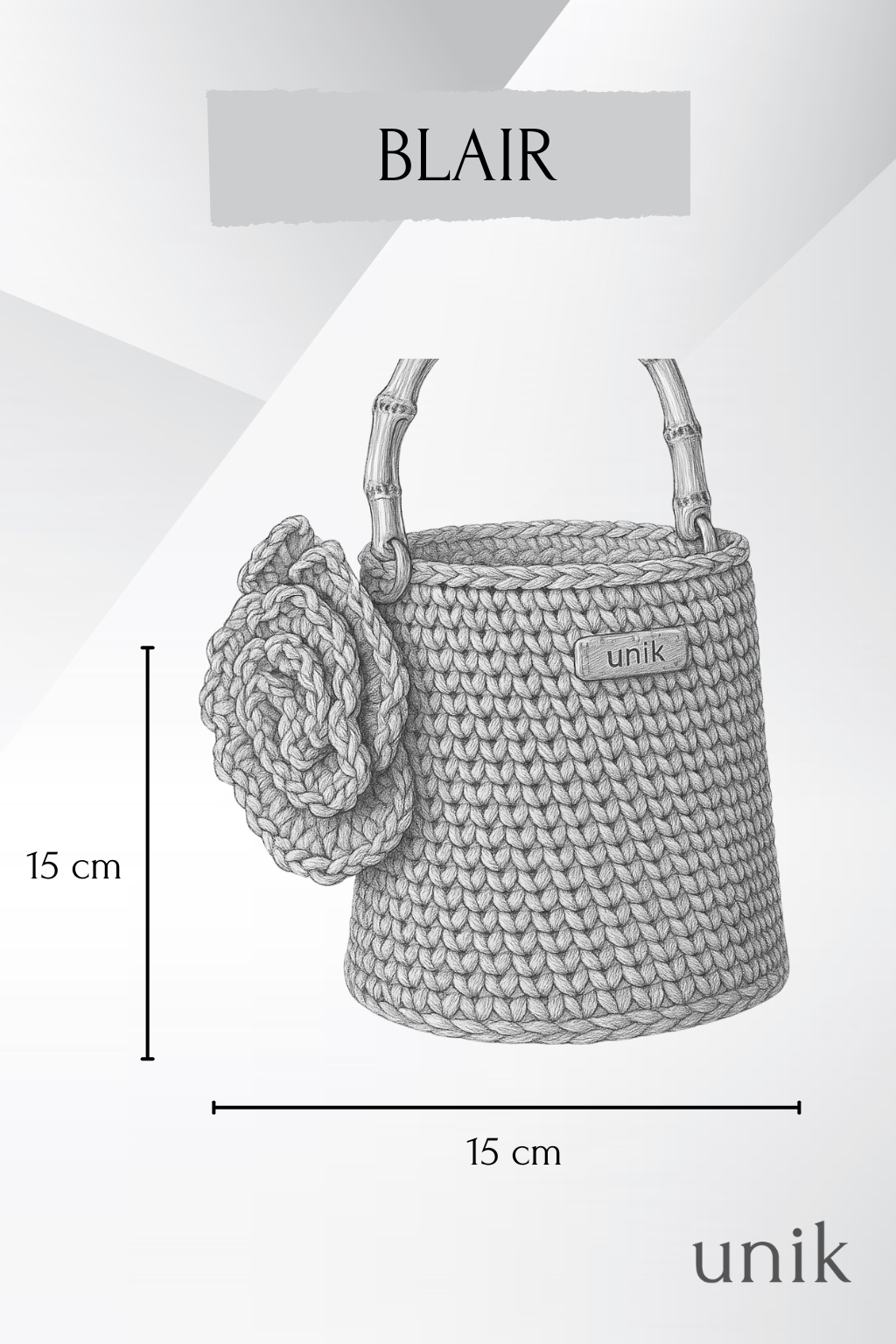 · Mides: 15 cm alçada i 15 cm de diàmetre · Fil perlat · Bosseta interior satinada · Etiqueta Unik |
