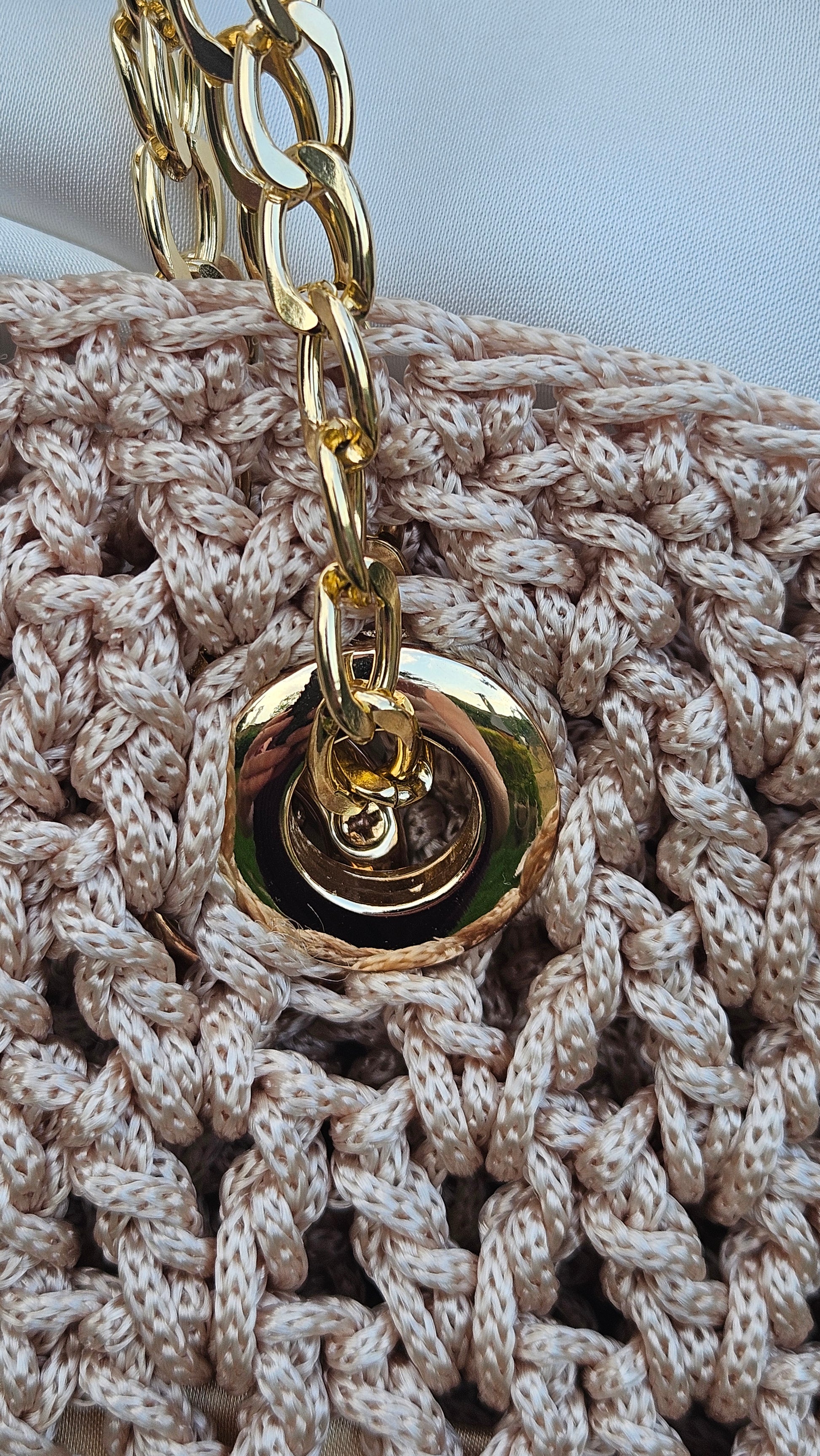 Mady, la nostra bossa de ganxet dissenyada per a dones que valoren l’artesania, l’estil i la funcionalitat a parts iguals. Fet a mà amb cura fil a fil, el model Mady destaca per la seva textura càlida i sofisticada que aporta un toc bohemi i elegant a qualsevol look.